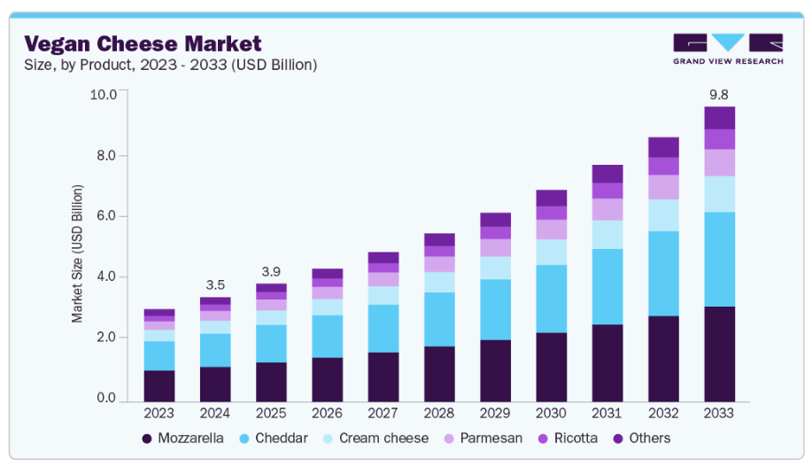 【英語タイトル】Vegan Cheese Market Size, Share & Trends Analysis Report By Product (Mozzarella, Ricotta, Cheddar, Parmesan, Cream Cheese), By Source (Cashew, Soy, Almond, Coconut), By Application (B2C, B2B), By Region, And Segment Forecasts, 2025 - 2033