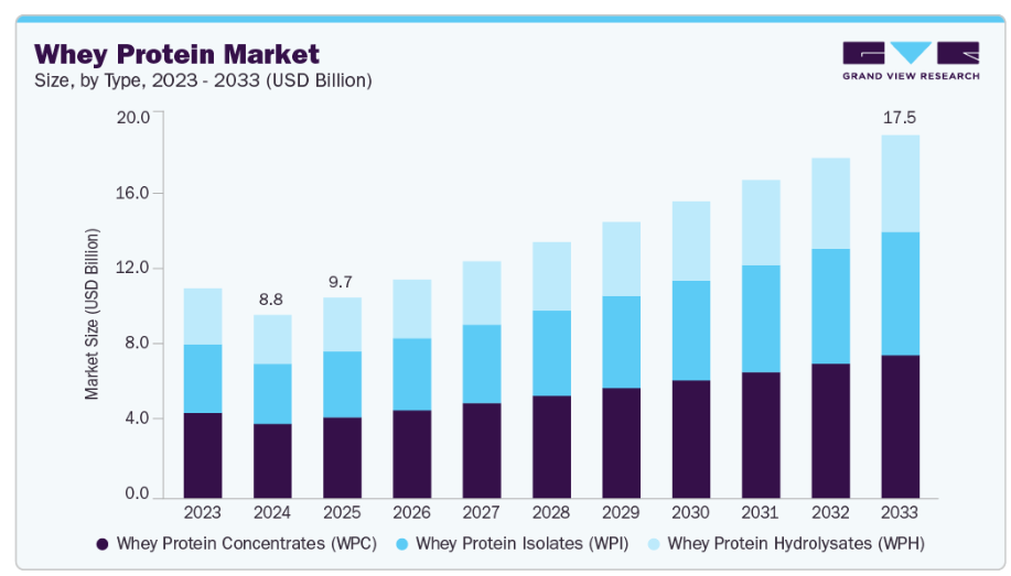 7. ホエイプロテイン市場:種類別推移分析(2024年および2033年、%)